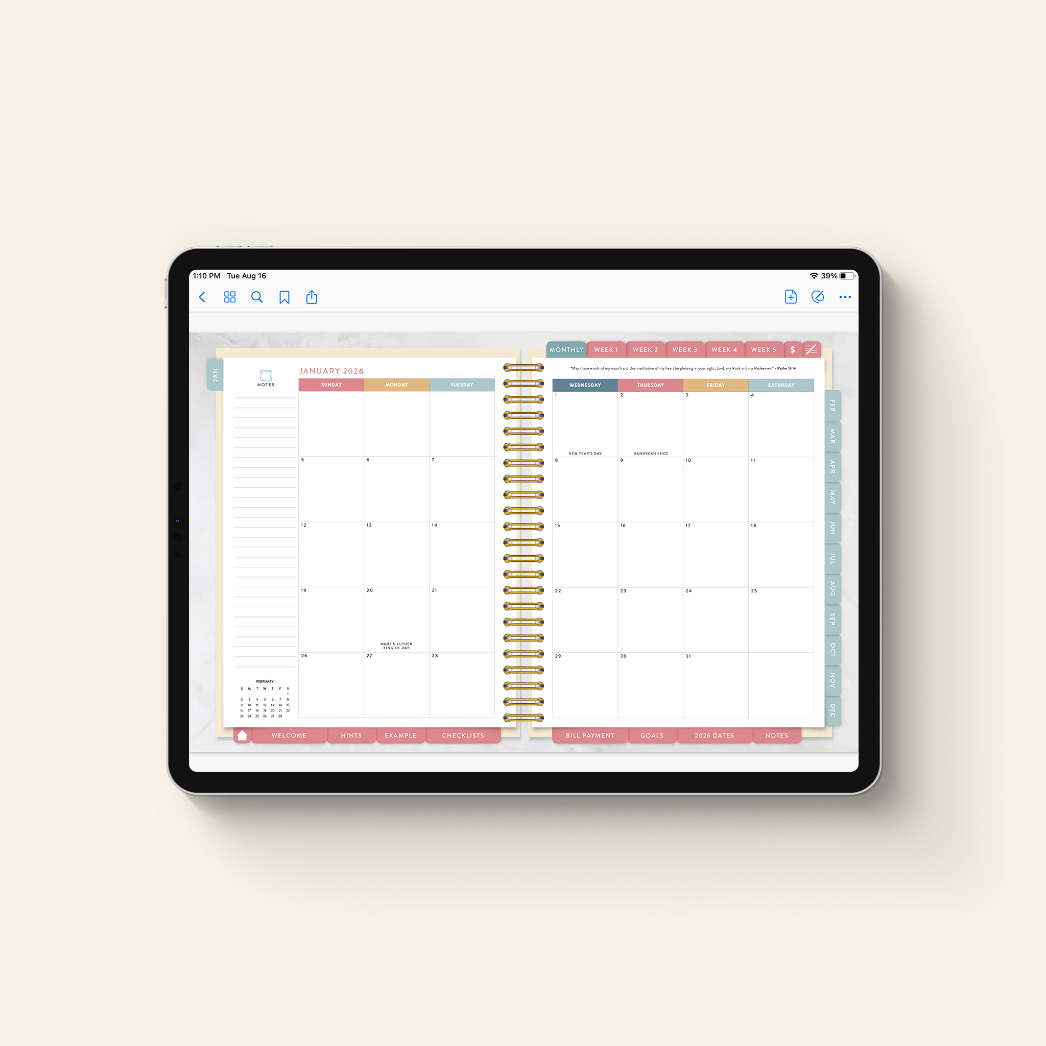 This is NOT your traditional planner. The 2026 Digital Home Planner and printable PDF download is a game-changer for busy families because of the pre-made checklists and recommended Bible scripture to read during the week.