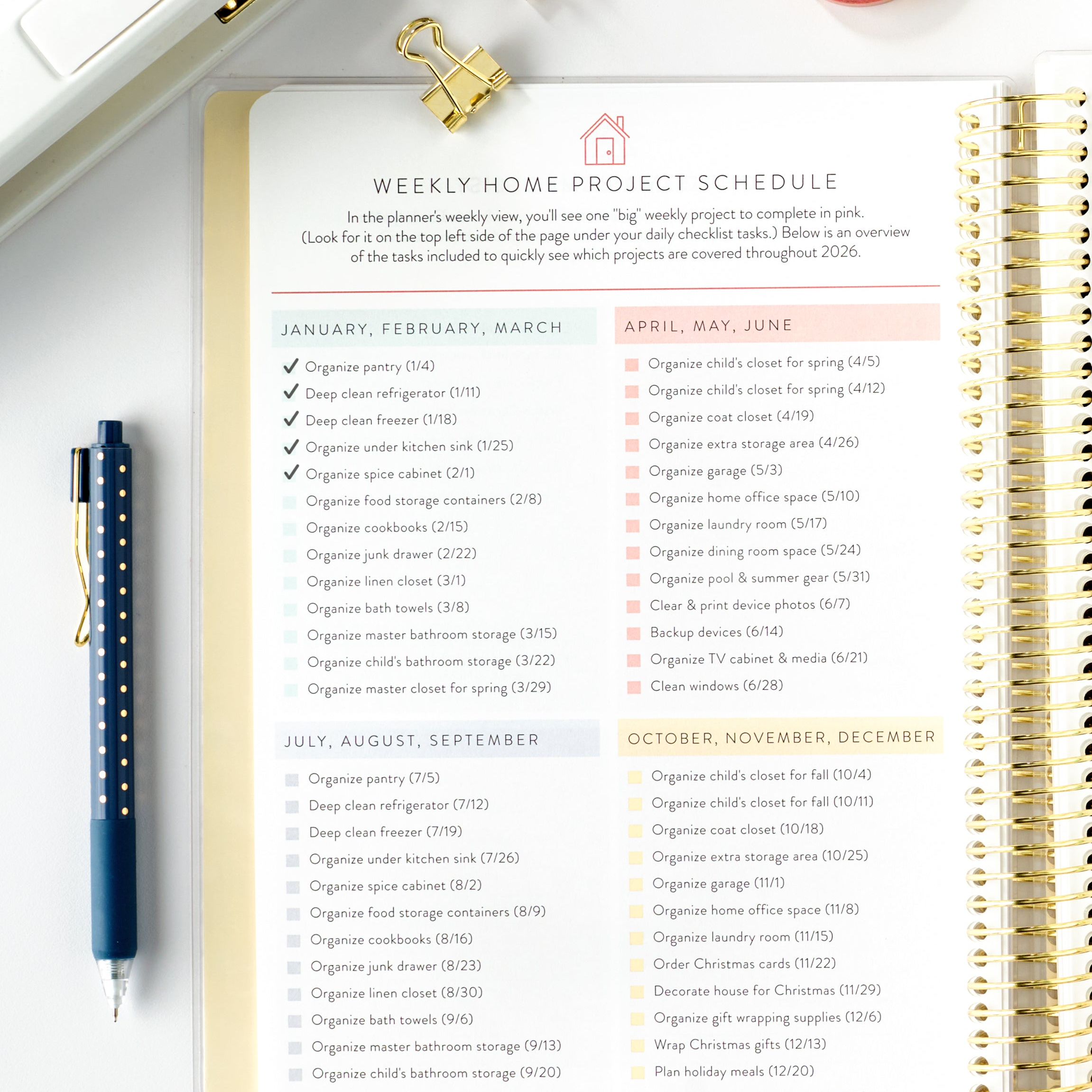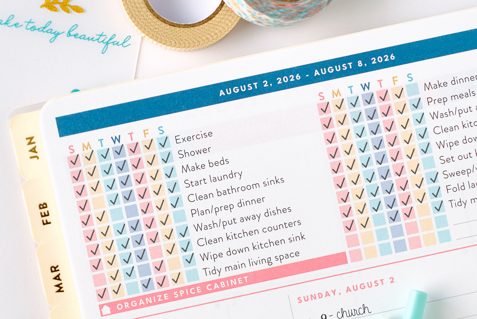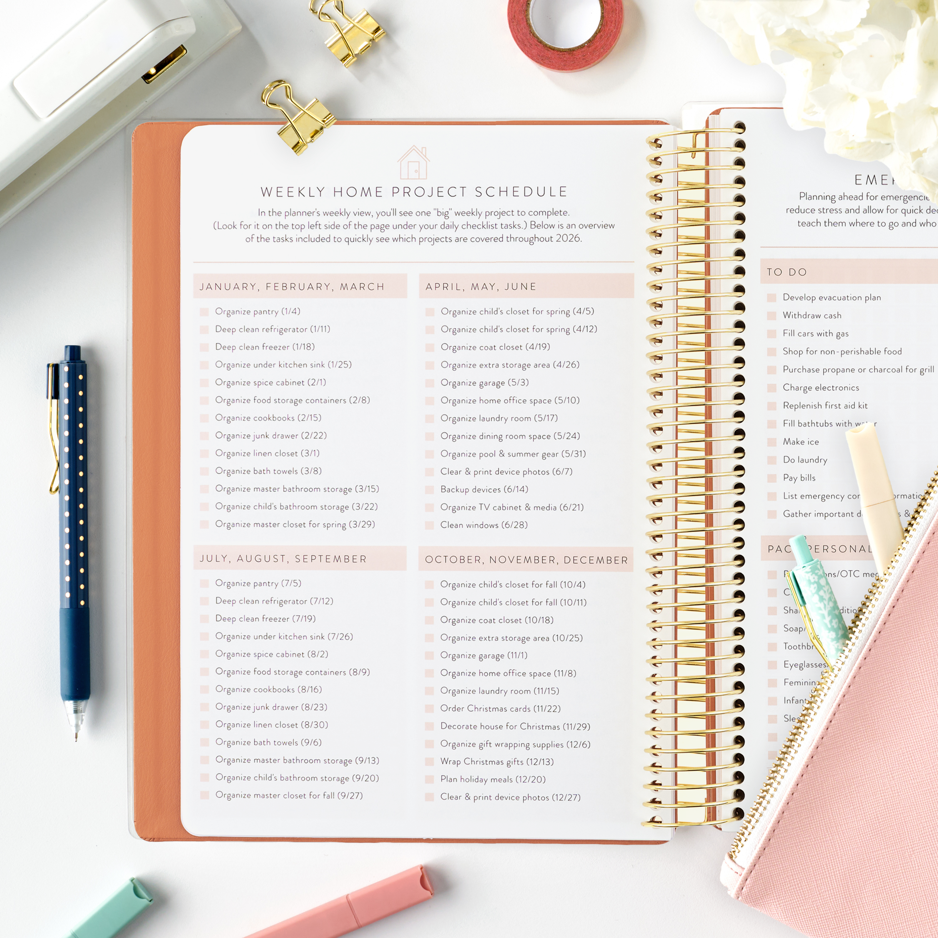 This is NOT your traditional planner. It’s a simple, effective home management system and a game-changer for busy families! In addition to the spacious weekly layouts and monthly calendars to map out your schedule, the Home Planner by PPP contains pre-made daily, weekly, and seasonal checklists to help you care for your home beautifully. We’ve even included a check box for a short Scripture reading for added encouragement each day!