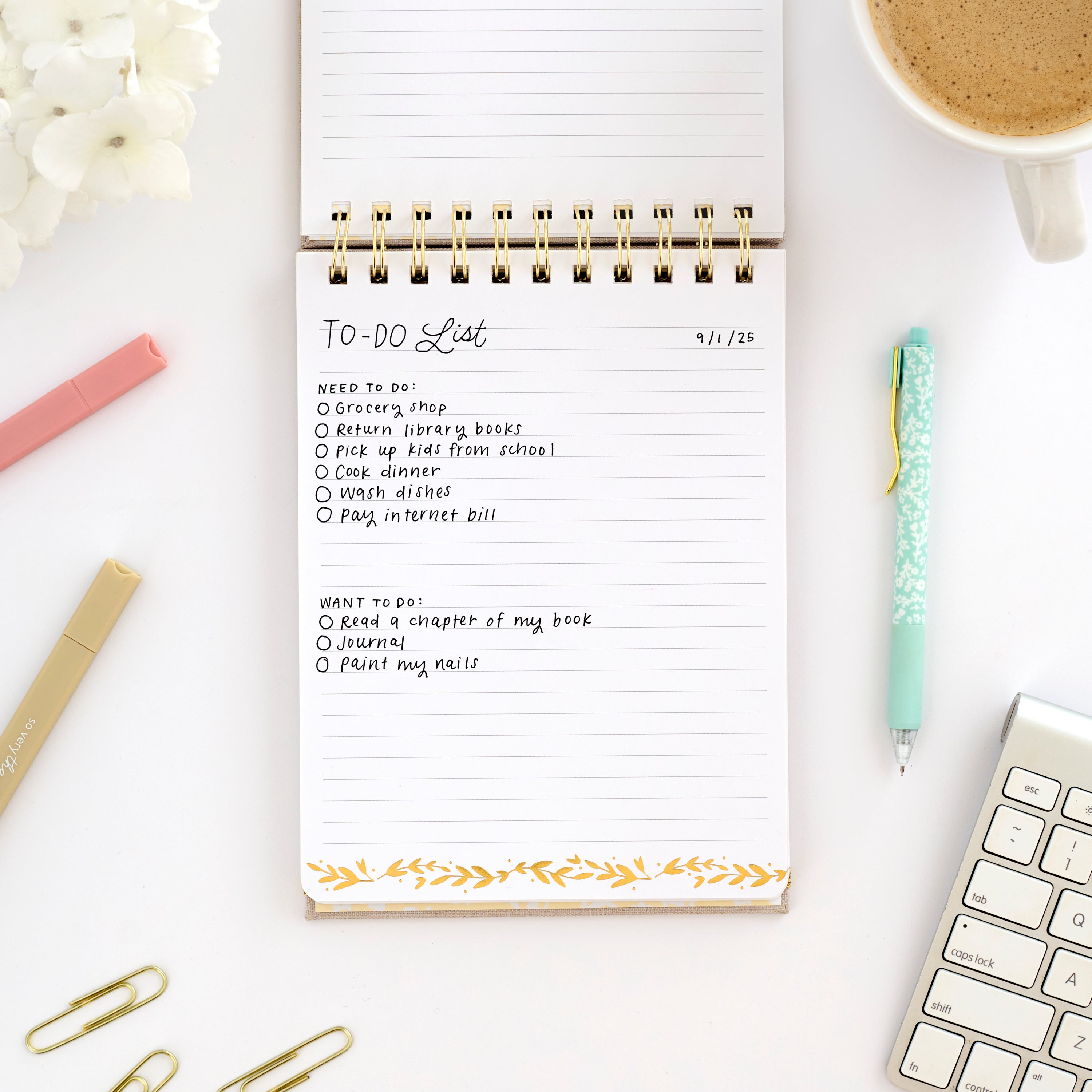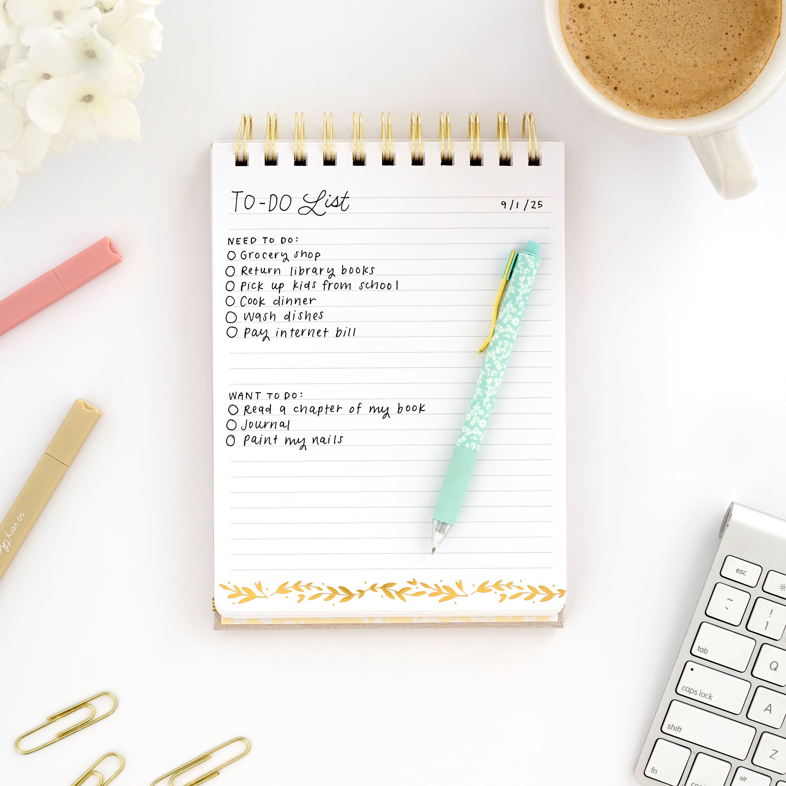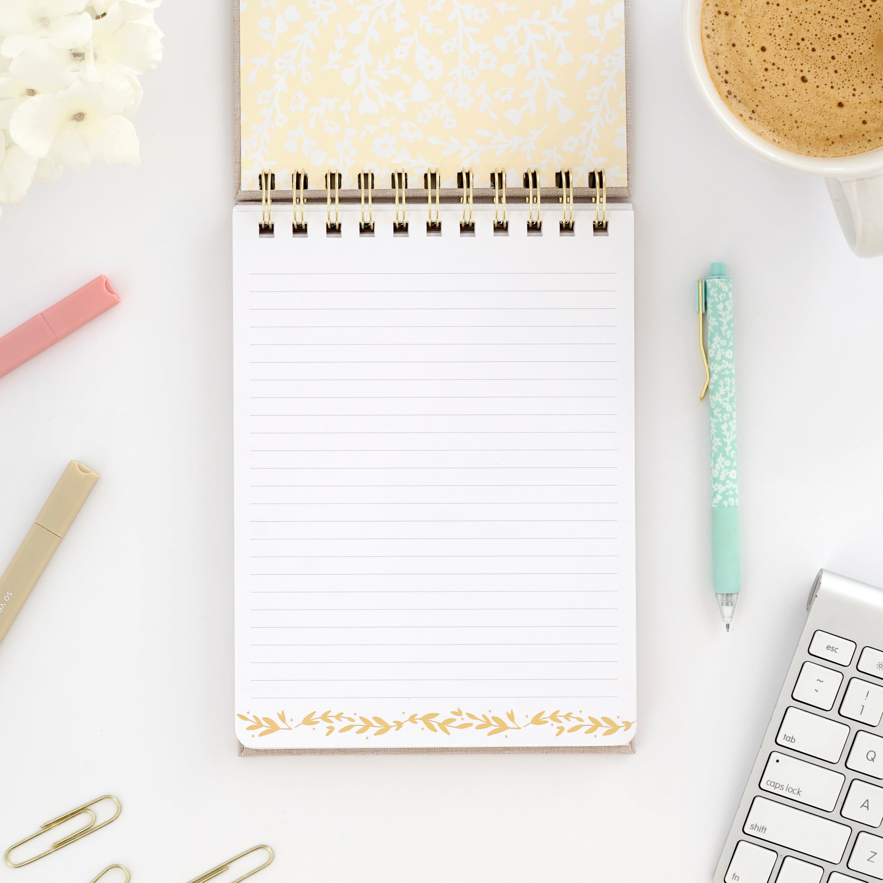 This Spiral Notebook by PPP has just the right mix of pretty and practical—perfect for jotting notes, to-do lists, or journaling. Inside you will find 50 double-sided lined pages, each accented with a delicate gold-foil leaf design. The khaki linen hardcover and gold elastic band make it sturdy enough to carry on the go and toss in your purse or bag. With thick pages, thoughtful details, and just the right amount of sparkle, this spiral notebook makes the simplest notes feel a little extra special.